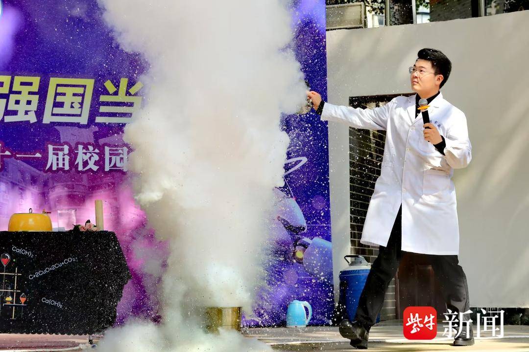 开幕式演出精彩纷呈,南航航模队带来的航模演出让同学们仰望蓝天时发出一阵阵欢呼和惊叹。科学秀让人目不暇接,“空气大炮”奏响空气的“冲击波”,震撼人心;-196℃的液氮遇上开水带来的“爆炸”性瞬间“冻”人心魄,升腾的蘑菇云仿佛“原子弹爆炸”,威力十足……科学与魔术的边界,在此刻变得模糊。