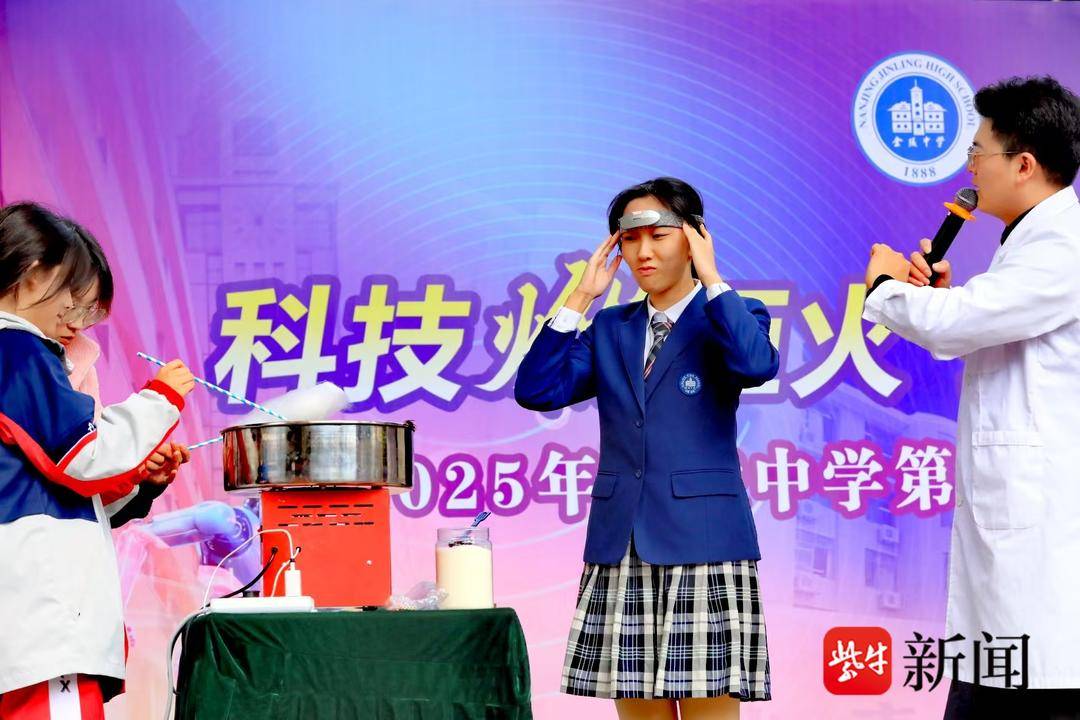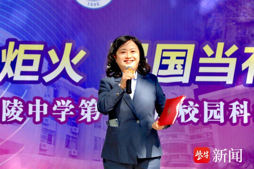 “当悠扬的钟声,掠过这些充满奇思妙想的展台时,我们仿佛能听到一场跨越百年的对话。今天,我们就在这场对话中,正式开启金陵中学第十一届校园科技节。”金陵中学党委书记孙小红表示,这场对话的起点,可以追溯到1891年。那一年,《申报》上刊登了一则“金陵成美学馆”(也就是汇文书院的中学部,也就是金陵中学的前身)的招生广告,它像一枚投入时间长河的石子,涟漪荡漾至今。广告中罗列的算学、化学、天文、地理,在当时是惊世骇俗的新学问。而那句“必赖师资,实事求是”以及强调“实验操作”的办学主张,为金中刻下了最初的基因:不尚空谈,唯求实证。这颗理性的种子,在此后一百三十三年里破土生长,终成庇荫后学的参天大树。金中的校友中,走出了36位中外院士,他们用一生的探索,将金中人的名字写入中国科学史的星空。
