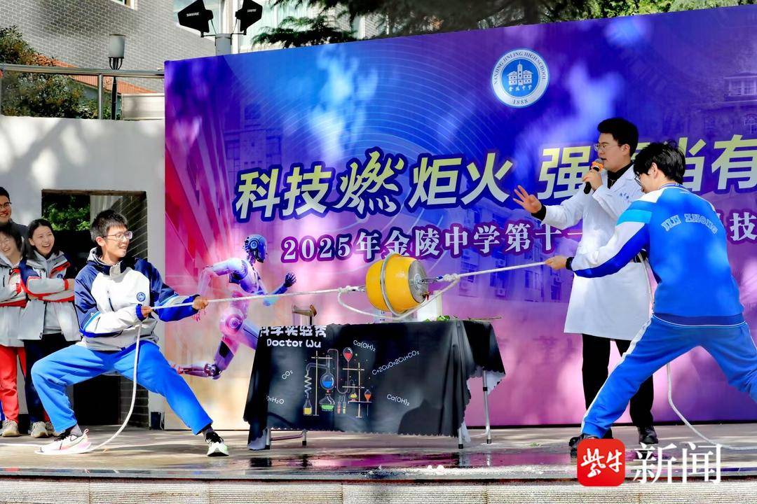 人机共舞、航模演出、实验科学秀……10月23日,南京市金陵中学“科技燃炬火,强国当有我”科技节酷炫开幕。当天,来自江苏省水利科学研究院和被誉为“国防七子”的顶尖院校北京航空航天大学、北京理工大学、哈尔滨工程大学、哈尔滨工业大学、南京航空航天大学、南京理工大学、西北工业大学的嘉宾也来到现场送上期许与祝福。