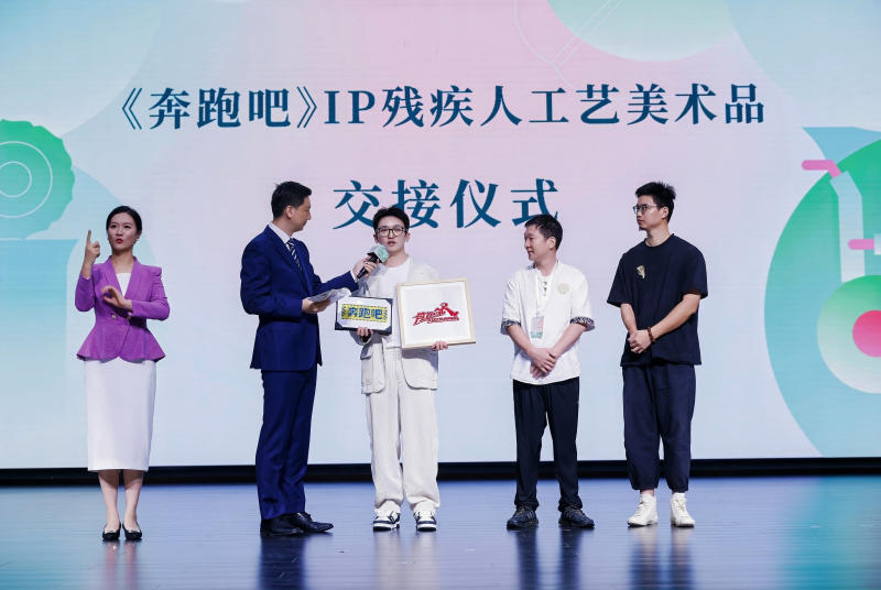 在《奔跑吧》IP残疾人工艺美术品交接仪式中,两件《奔跑吧》主题残疾人手工艺制品首发亮相。两件工艺作品的创作思路来自浙江卫视综艺衍生品KEEP FUN系列延展,传递“奔跑不息、超越自我”的精神内核。在展览结束后,作品将正式入驻“奔跑吧·部落慢闪店”全国首店——杭州大悦城,实现影视IP与残疾人工艺的跨界共鸣。