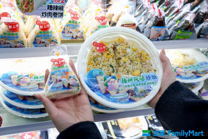 为回馈扬州消费者,全家于11月20日至22日三天推出多重开业福利:88元新城市大礼包、会员全场75折、消费满额砸金蛋等酬宾活动。同时,针对扬州新会员推出集点活动,可兑换崽崽盲盒、22周年纪念款时尚包等品牌IP限定周边。同时,全家还结合本地特色“扬州炒饭”,推出扬州城市限定的便当和饭团两款鲜食商品,让入驻扬州的全家更有扬州味。