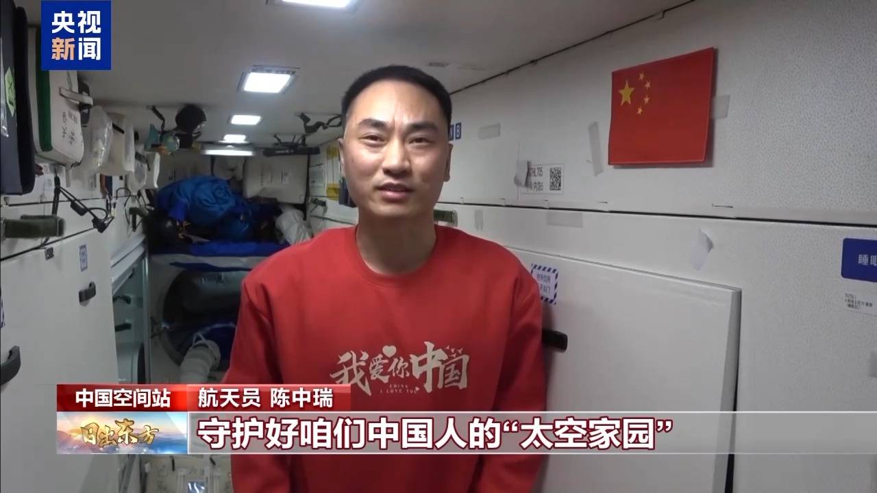 神舟二十号航天员乘组:我们在中国空间站祝福伟大的祖国国泰民安,繁荣昌盛,我爱你中国!