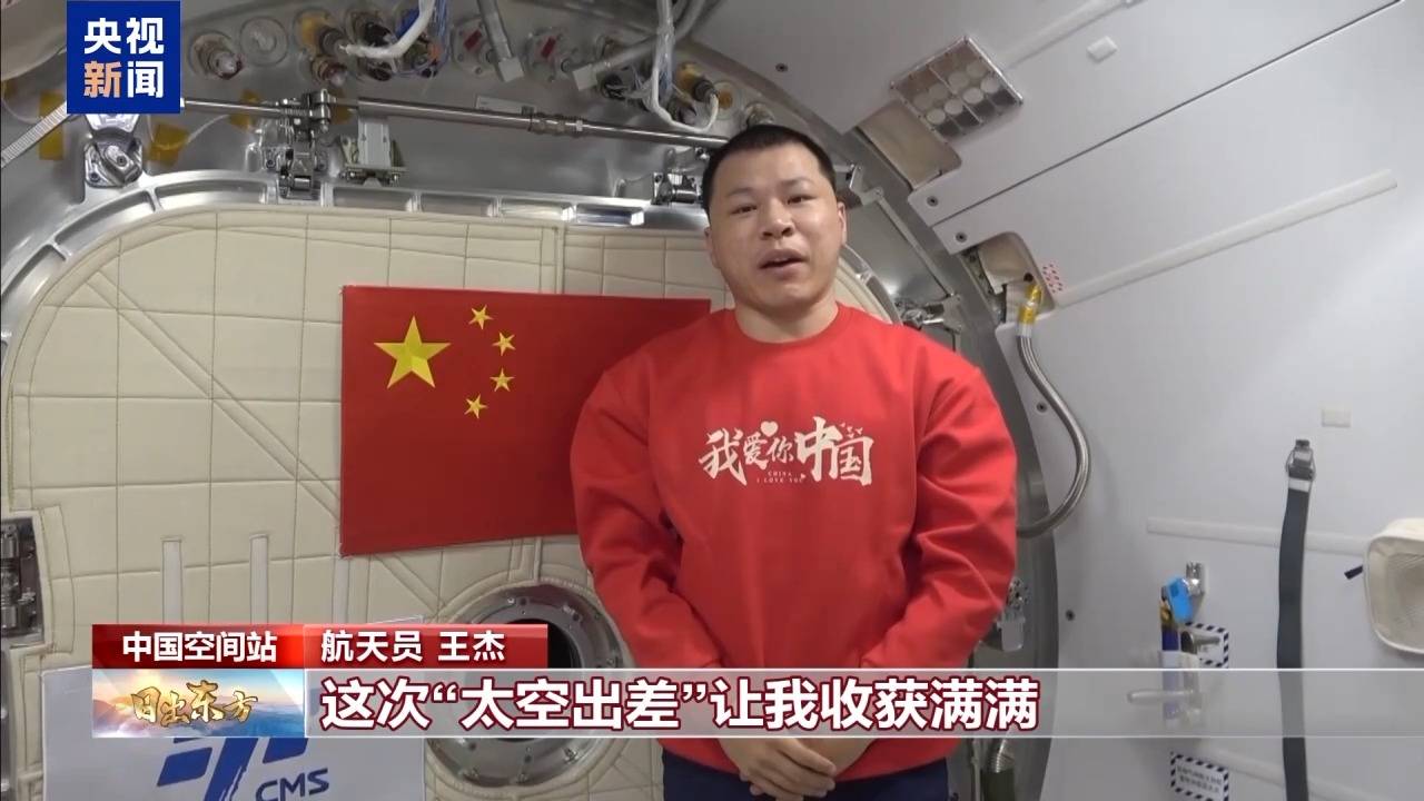 航天员 王杰:国庆佳节来临之际,身处中国空间站的我们心潮澎湃。作为一名年轻航天员,这次“太空出差”让我收获满满。请祖国和人民放心,我们在中国空间站“感觉良好”。接下来,我们将继续完成各项科学实验,做好迎接神舟二十一号乘组的各项准备,圆满跑完神舟家族太空接力中属于我们的这一棒!