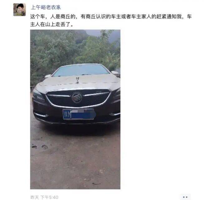 10月9日,知情人柯女士告诉大皖新闻记者,10月8日下午5点,她和朋友自驾前往新乡南太行三叠瀑游玩,在一家名为“上午峪老农家”的农家乐准备用餐时,发现门口停了一辆豫N牌照轿车,“农家乐老板说车主一个人上山去了,没有带吃的,去了快两天,农家乐老板已报警。”