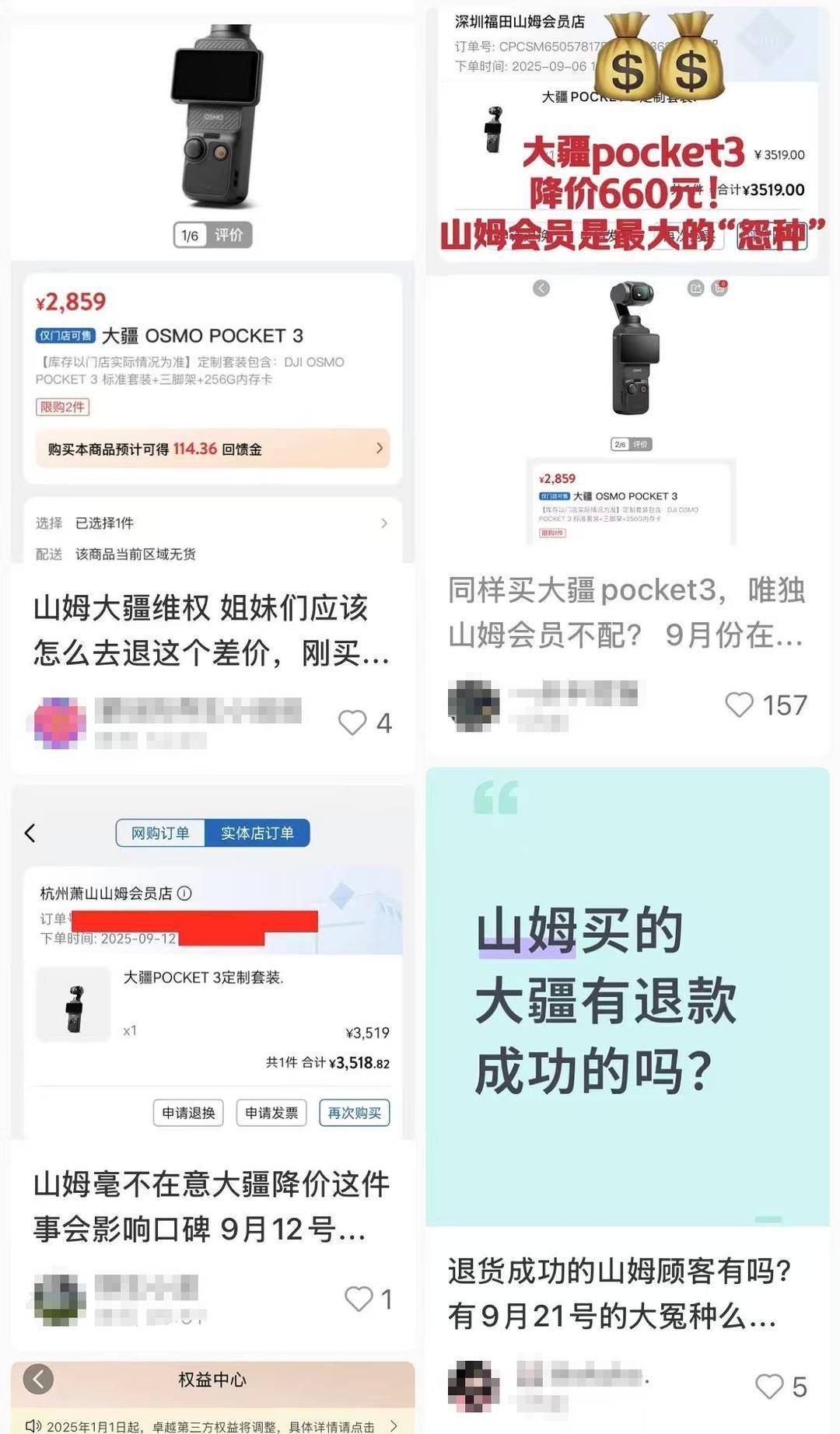 山姆回应门店大疆Pocket 3降价,已有消费者收到差价补偿 详情