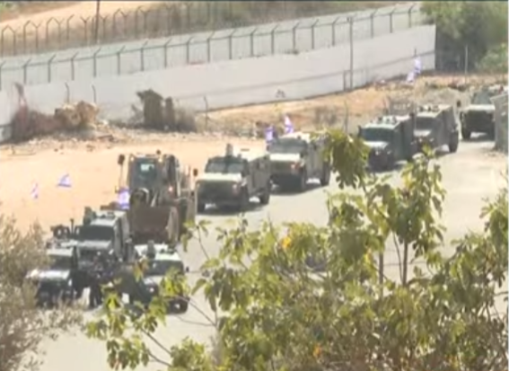 当地时间13日,载有巴勒斯坦被扣押人员的车队驶离以色列南部监狱。目前已开始被扣押人员释放工作,正在进行人员移交。