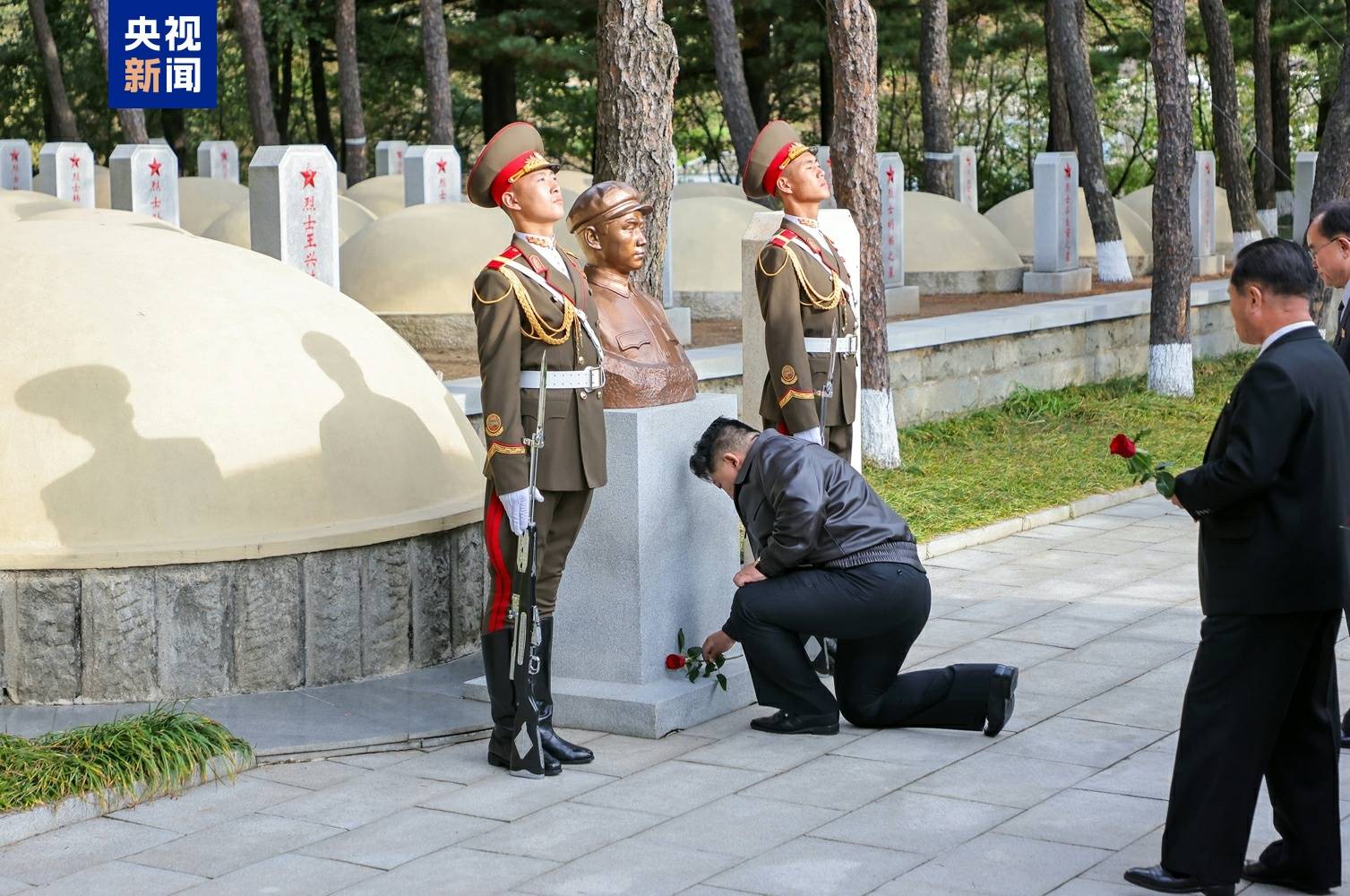 在中国人民志愿军抗美援朝出国作战75周年之际,朝鲜劳动党总书记、国务委员长金正恩10月24日参谒平安南道桧仓郡的中国人民志愿军烈士陵园,向烈士们表示崇高敬意。