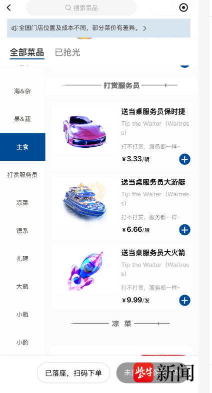 紫牛热点∣“保时捷”“大游艇”“大火箭”都来了!烧烤店线上点单可“刷礼物”打赏服务员