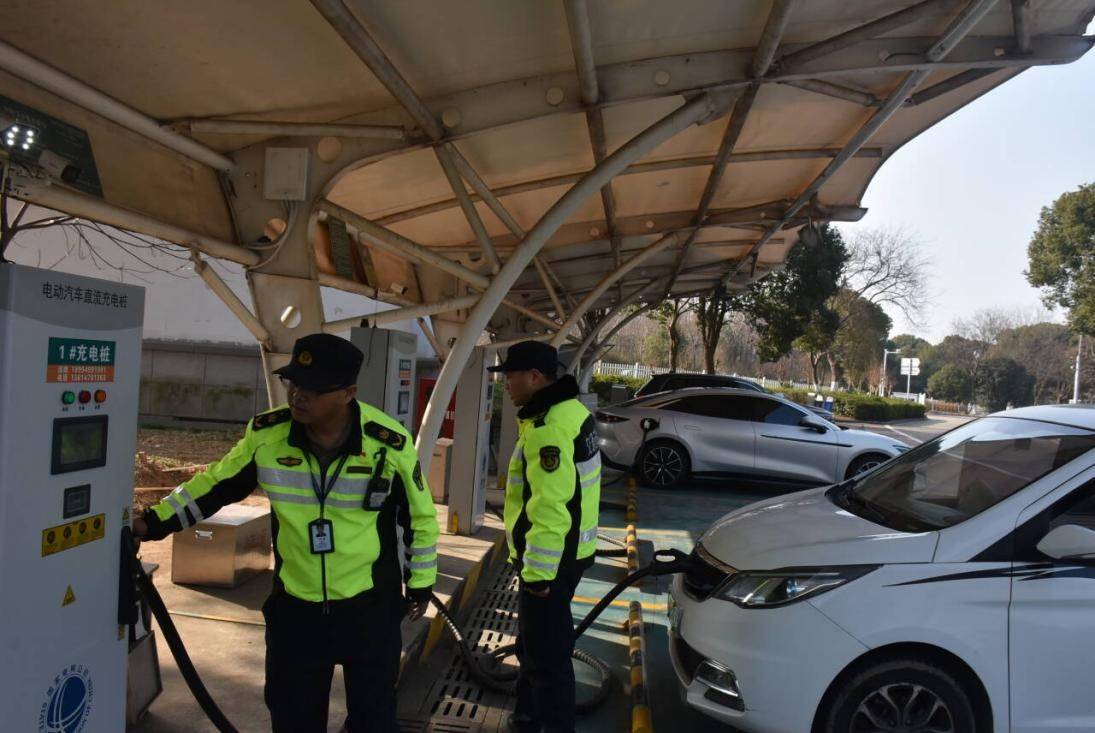 今年春节,受扬溧高速镇江段四改六通车、导航软件分流推荐、跨区域中转车流增加等多重因素影响,辖区荣炳服务区新能源车辆充电需求激增。大队主动作为、精准发力,切实破解群众急难愁盼,高峰时段安排执法人员在充电区域定点值守,同时督促服务区加强管理,做好新能源车辆登记,引导充满电车辆及时驶离,杜绝非充电车辆占用充电车位。2月12日起协调经营单位在荣炳服务区增设移动充电车及4把移动快充设备,有效缓解充电压力。2月18日中午,荣炳服务区充电桩饱和排队,大队联合“一路三方”紧急会商,及时发布诱导信息,引导车辆前往下一服务区休整充电。