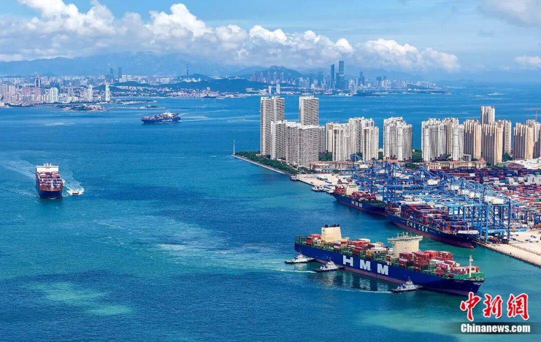 从青岛港眺望青岛东岸主城区。(无人机照片)张进刚 摄