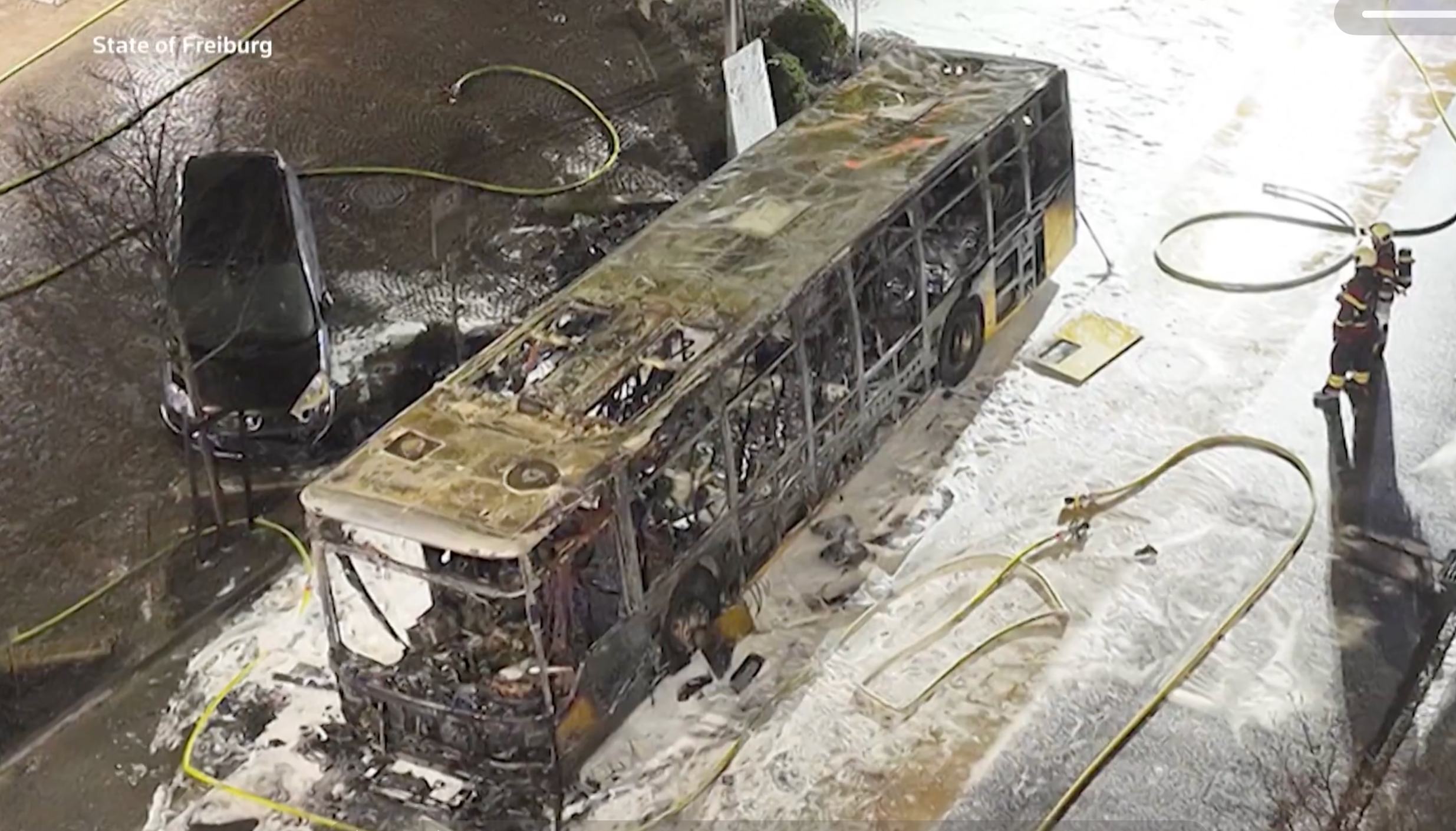据警方介绍,当地时间3月10日周二傍晚,这辆公交车在行至克尔泽斯镇中心附近时瞬间被大火吞没。目击者记录下的画面显示,一名浑身着火的受害者跑出车外,在车旁的地面上痛苦挣扎。