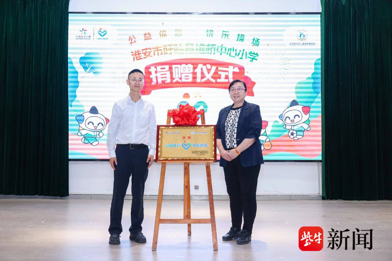 捐赠仪式上,顾敏、张焕志共同为“公益体彩 快乐操场”揭牌。2024年,江苏省体彩中心向省妇儿基金会捐赠20万元,专项用于2025年在淮安市盱眙县维桥中心小学、徐州市铜山区新区实验小学、连云港市东海县李埝乡中心小学、镇江市润州区南徐小学以及常州市天爱儿童康复中心等5所学校开展“公益体彩快乐操场”活动,目前受捐学校的体育器材均已配备到位。淮安市盱眙县维桥中心小学校长王德兵表示,受捐体育用品将丰富学校的体育教学内容,让更多孩子感受运动的快乐,在运动中强健体魄、锤炼意志、收获友谊。