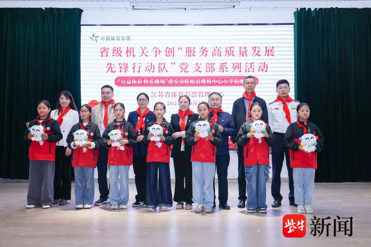 10月17日下午,江苏省体育彩票管理中心携手江苏省妇女儿童福利基金会,在淮安市盱眙县维桥中心小学举行了“公益体彩 快乐操场”捐赠仪式。江苏省妇女儿童福利基金会副理事长兼秘书长顾敏,江苏省体育彩票管理中心主任张焕志,盱眙县委副书记、副县长俞姝等出席捐赠仪式。为充分发挥共建优势、赋能校园公益活动,省民政厅慈善事业促进处党支部、省市场监管局食品抽检处党支部、省退役军人事务厅规划财务处党支部、江苏海事局船员管理处党支部、省卫健委计生协党支部、省妇联权益部党支部等6家争创省级机关“服务高质量发展先锋行动队”共建党支部代表共同参加捐赠仪式。