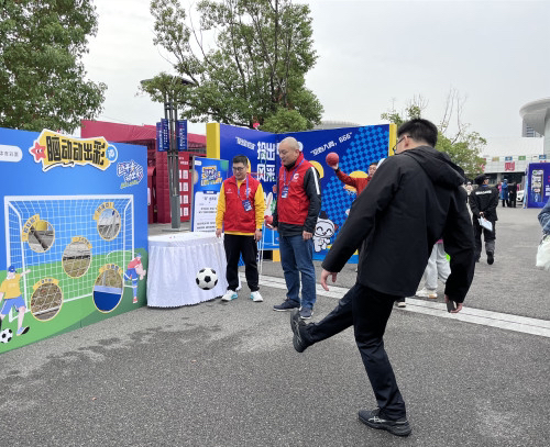 赛事当天,泰州体育公园的体彩展区人气爆棚。拳击靶击、迷你篮球投篮、足球进球等趣味小游戏,吸引了马拉松选手、陪同人员及孩子们踊跃参与。大家摩拳擦掌轮番挑战,完成每个游戏即可获得打卡章,集齐印章后便能兑换苏超泰州队队服、定制毛巾等专属礼品,现场欢声笑语不断。展区内的公益金主题展板图文并茂,通过实景照片向经过的选手们直观呈现四大公益板块:群众体育赋能领域、泰州马拉松赛事组织与服务、竞技体育培育、更延伸至全龄公益覆盖等都离不开体彩公益金的支持。工作人员同步发放责任彩票宣传单,细致讲解公益金用途,让市民清晰知晓每一张彩票都在为身边的体育与公益事业助力,展区内的即开票销售区,成为大家亲身参与购彩、近距离践行体彩公益的便捷渠道。