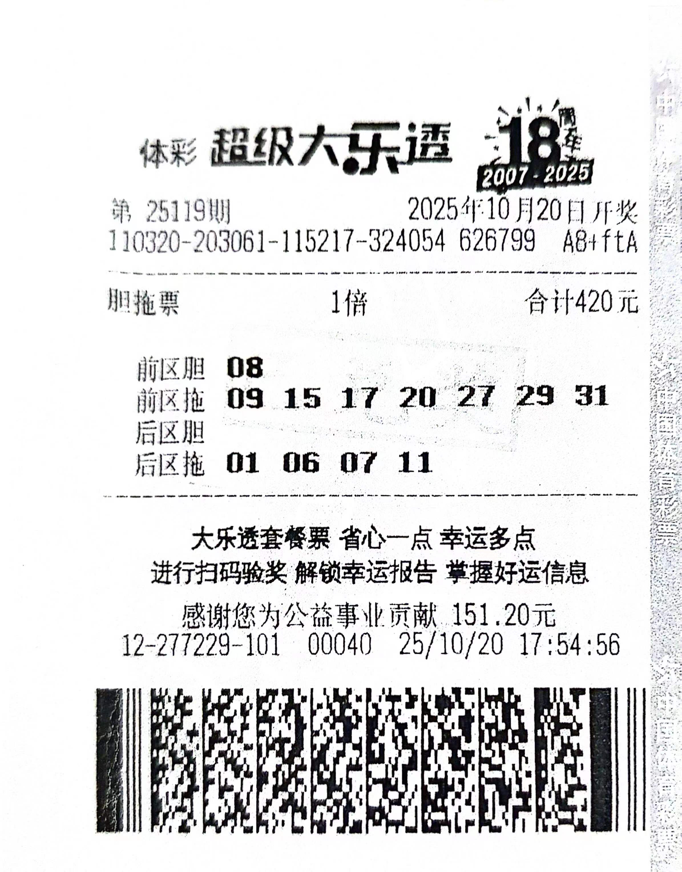 据了解,王先生的购彩方式兼具随性与巧思。以往他选号多以机选随机号码为基础,再凭个人心意筛选掉部分数字,既省去盲目纠结的烦恼,又保留了参与感。购彩节奏也是随机不定,偶尔会到彩票店买几注大乐透或竞彩游戏,始终秉持轻松娱乐的心态。值得一提的是,他最近才尝试大乐透“守号”,没想到仅坚持几期,就收获了千万大奖,这份幸运让他“完全没料到”。谈及中奖后的心情,王先生难掩激动:“多亏了朋友陪我来兑奖,一起见证这份幸运。”他表示未来的购彩习惯不会改变,仍然会以理性为前提,在享受购彩乐趣的同时,继续为体彩公益事业贡献自己的一份力量。