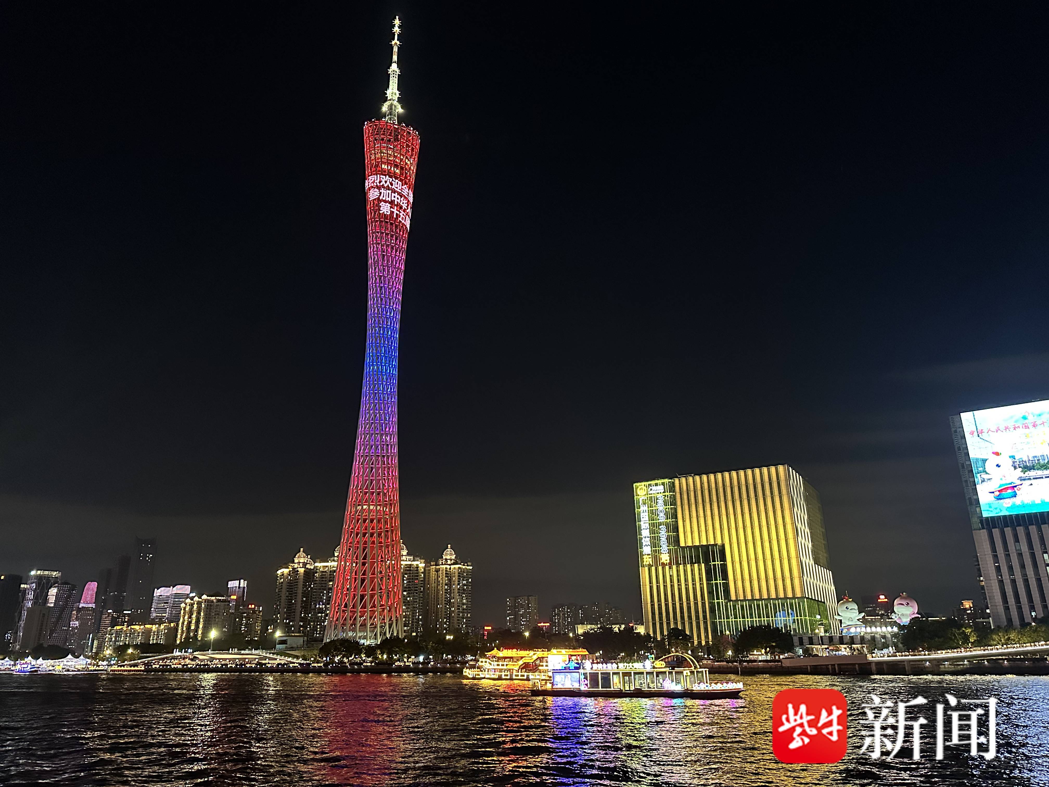 广州塔下人头攒动,塔身上“全运加油”的动态字样与璀璨灯光交相辉映,人们纷纷举起手机拍摄广东塔“小蛮腰”这一限定时刻。珠江岸边,游船悬挂的全运会会徽彩灯在水面投下粼粼波光,市民与游客围坐在堤岸,江风裹挟着欢声笑语传遍两岸。北京路步行街上,全运主题海报贴满沿街商铺,大屏幕前挤满了驻足观看的人群,掌声、喝彩声此起彼伏,不少商家还推出了全运限定活动,让购物与观赛的乐趣完美交融。
