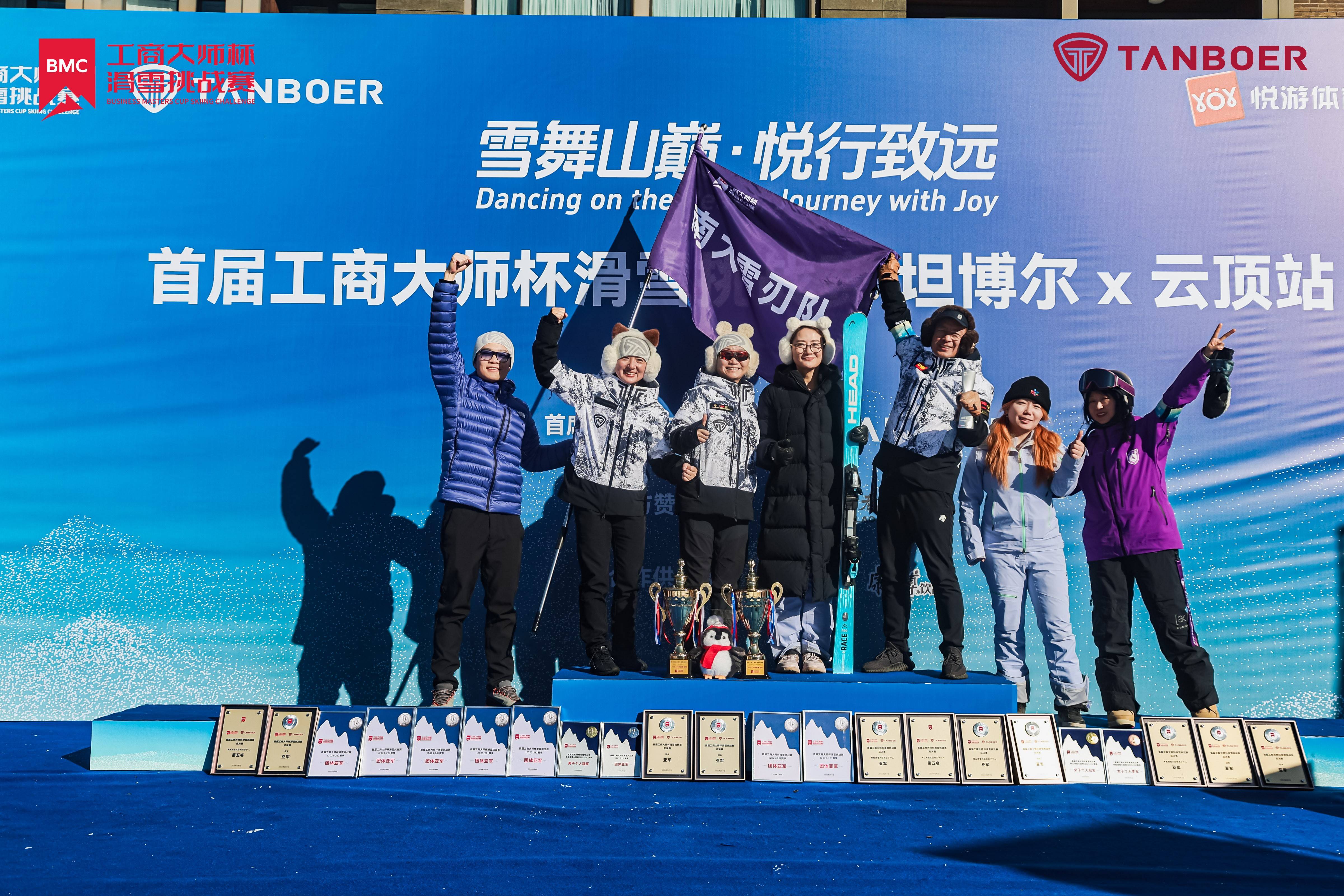 冬奥结束后,李艳的推广之路逐渐起步。2025年10月,从戈壁徒步归来的她发现,北大、清华等北方高校早已拥有成熟的滑雪俱乐部,而南大的滑雪爱好者还处于“散兵游勇”状态。恰逢首届工商大师杯挑战赛即将开赛,她紧急招募队员,组建起还未正式成立的南大雪刃队。“当时想着能完赛就好,毕竟北方院校有天然雪场优势,我们这些‘南方小土豆’连常态化训练都难。”没想到,这支“临时拼凑”的队伍在松花湖站斩获团体第二,女子单项包揽亚季军,紧随北大之后。2026年1月阿勒泰站,他们又凭借精准策略和顽强拼搏,包揽单板男女冠军、女子双板冠军,以“三冠”战绩拿下阿勒泰站的总冠军,两站积分反超北大跃居榜首。而在刚刚结束的崇礼与北大上演“南北巅峰对决”中,这只年轻的队伍获得了男子单板总冠军,女子双板总冠军,团体亚军,未来可期。