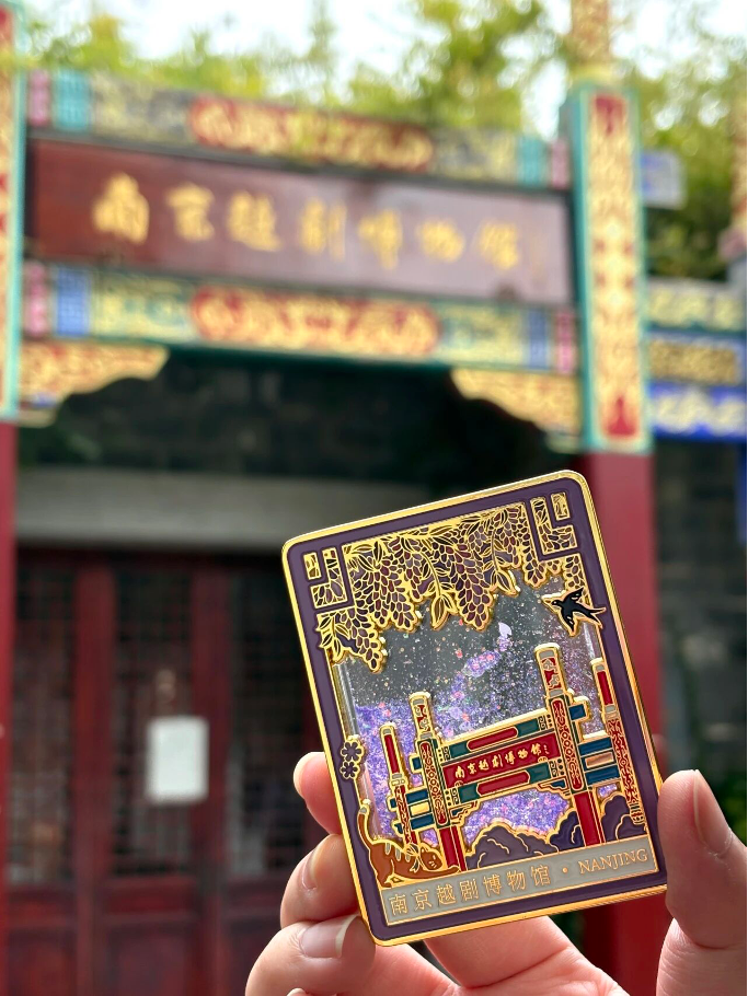 馆内精心打造的文创品牌“越金陵”,更是传统艺术与当代潮流巧妙结合的典范。其推出的系列文创产品,如兼具实用与美观的两用徽章、憨态可掬的Q版贾宝玉与林黛玉毛绒娃娃、寓意“万事莫愁”的莲花抱枕、巧妙化用经典剧目的“祝你有靠山”谐音梗系列、直抒胸臆的“不删了不改了”台词钥匙扣以及等比例复刻的南京市越剧团牌匾冰箱贴等,无不将越剧的文化符号融入现代生活美学的细节之中,让古老的戏曲艺术以新鲜、活泼的姿态走进大众,尤其是年轻群体的日常生活。