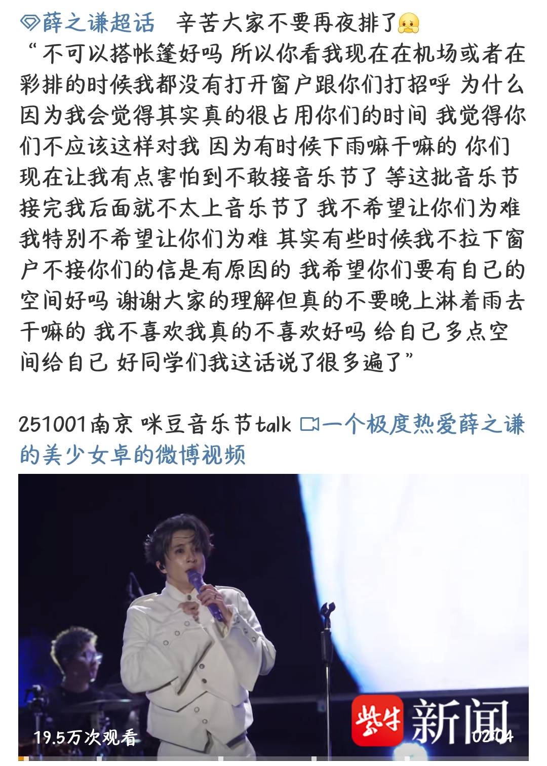 薛之谦喊话粉丝不要夜排,奔赴音乐是热爱不是竞赛