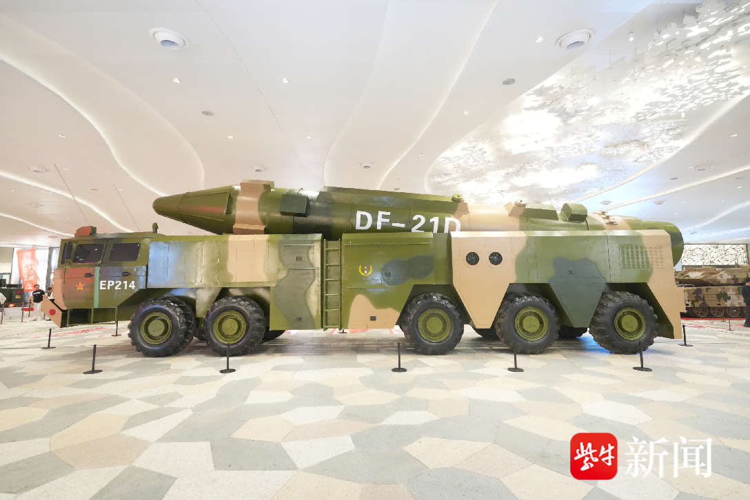 现场还可以了解到不少相关知识。东风-21D反舰弹导弹(DF-21D)是中国在20世纪80年代末研制成功的一款陆基机动式中程弹道导弹,是中国首款反舰弹道导弹,采用机动发射车部署。其发射车为特种轮式高机动底盘,具备快速部署与隐蔽机动能力,可执行公路、越野发射任务。该导弹具备远程精确打击大型水面舰艇的能力,被称为“航母杀手”,东风21系列中程弹道导弹发展至今,已经成为解放军装备序列中先进程度最高的武器。