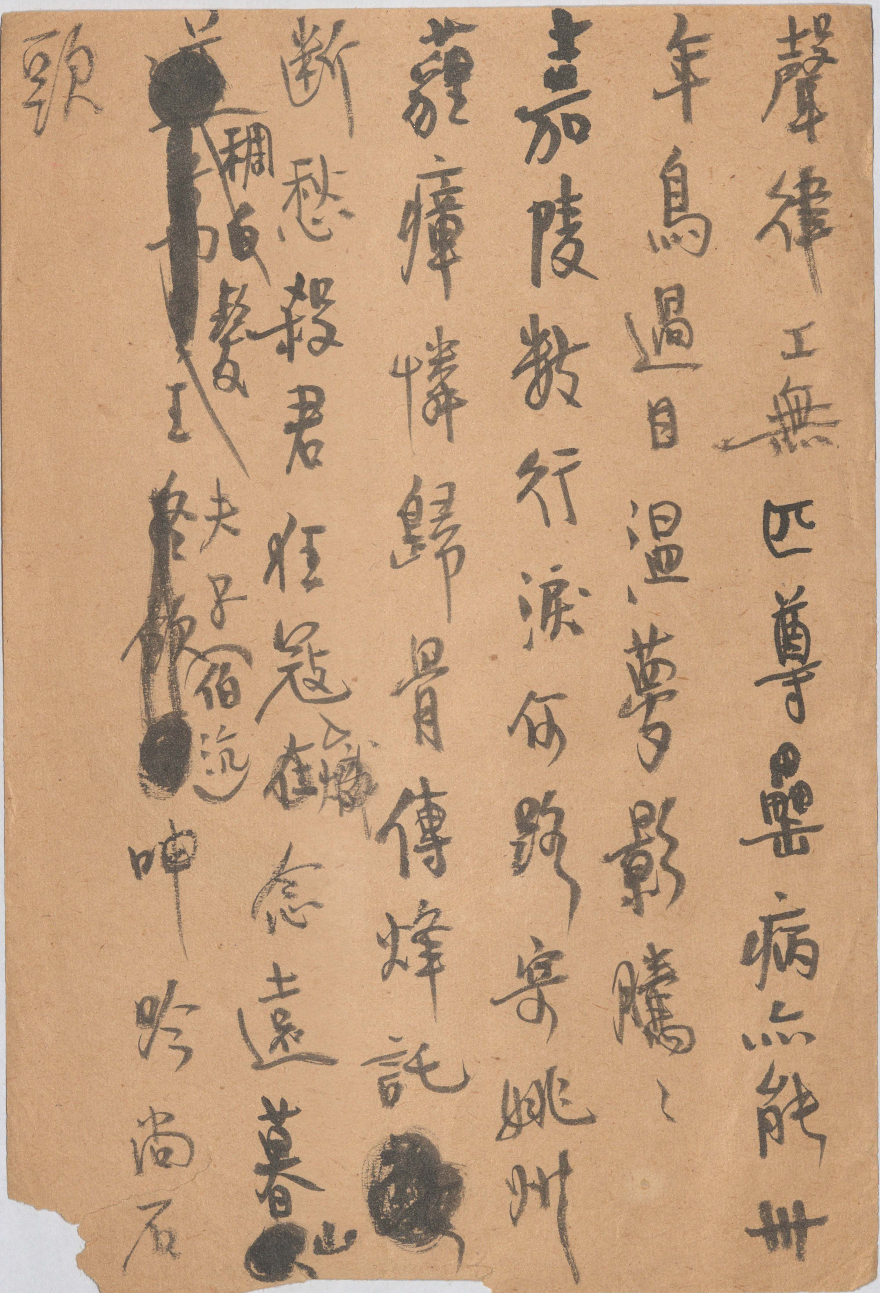 他为《国难特刊》《新民族》等抗战刊物题写刊名,其书法风格在此时更显刚劲雄强、峭拔峻厉。笔锋如刀,剑拔弩张,一改往日书卷气的典雅,充满了金石般的铿锵之力与不屈的斗志。观看他的手稿,不仅能从文字中读到“长夜膠膠”的压抑与悲愤,更能从笔画的顿挫、墨色的浓淡、布局的险峻中,直观地感受到诗人内心情感的激荡与挣扎。