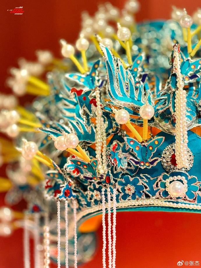 南京越剧博物馆工作人员告诉记者,张杰拍摄的这组照片中,第一张图片里艺术字“金陵”“越剧”“越来越好”相框都是越剧博物馆的内部陈设,最后一张图中精美的头冠来自越剧博物馆的热门打卡点,该打卡点位于越剧博物馆的二进院“喜越金陵”品牌奶茶对面,以朱红色墙面为背景,游客可以刚刚好的站在头冠下拍照留念,自国庆期间越剧博物馆焕新开业以来这个打卡点就特别受到欢迎。