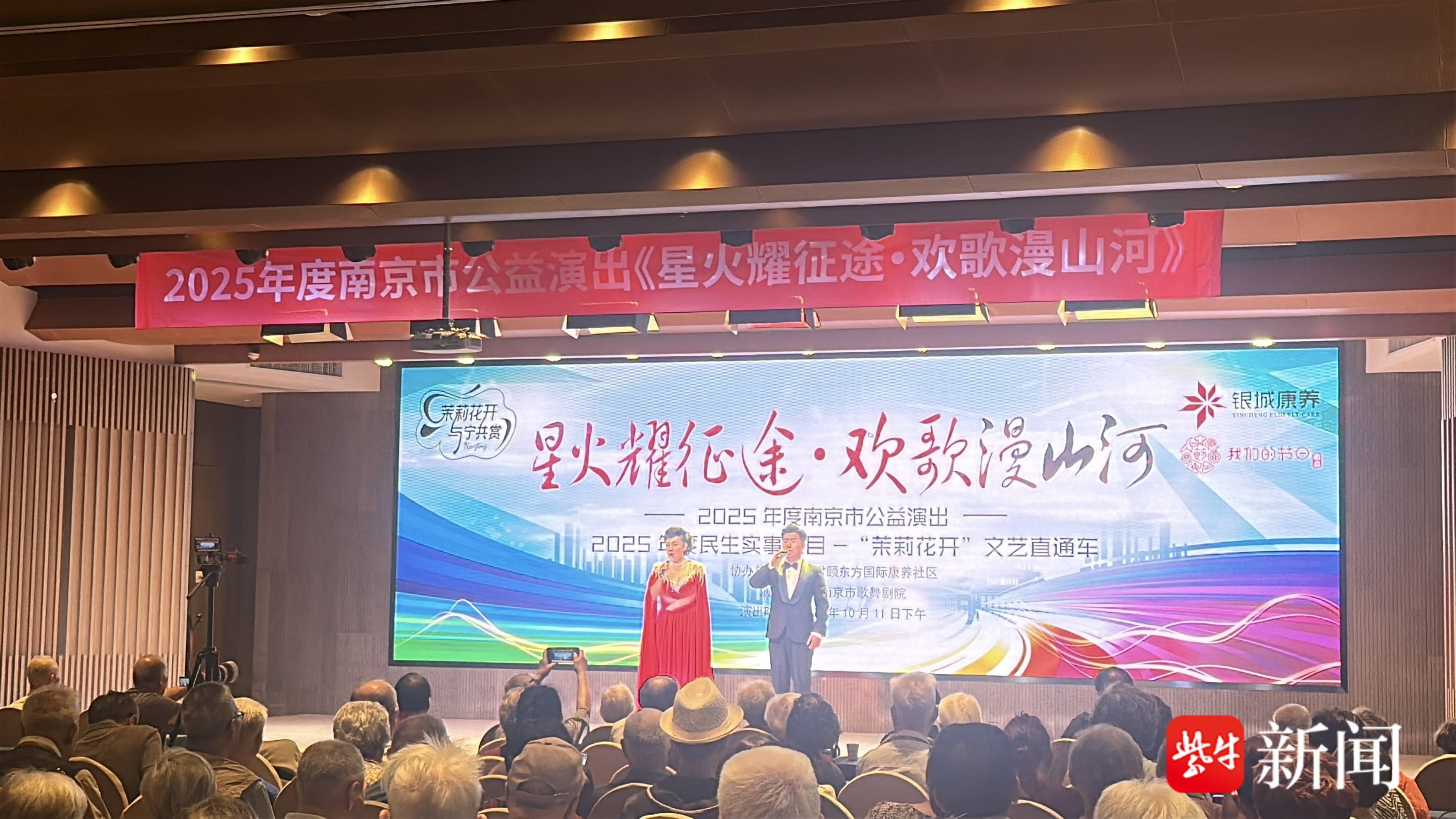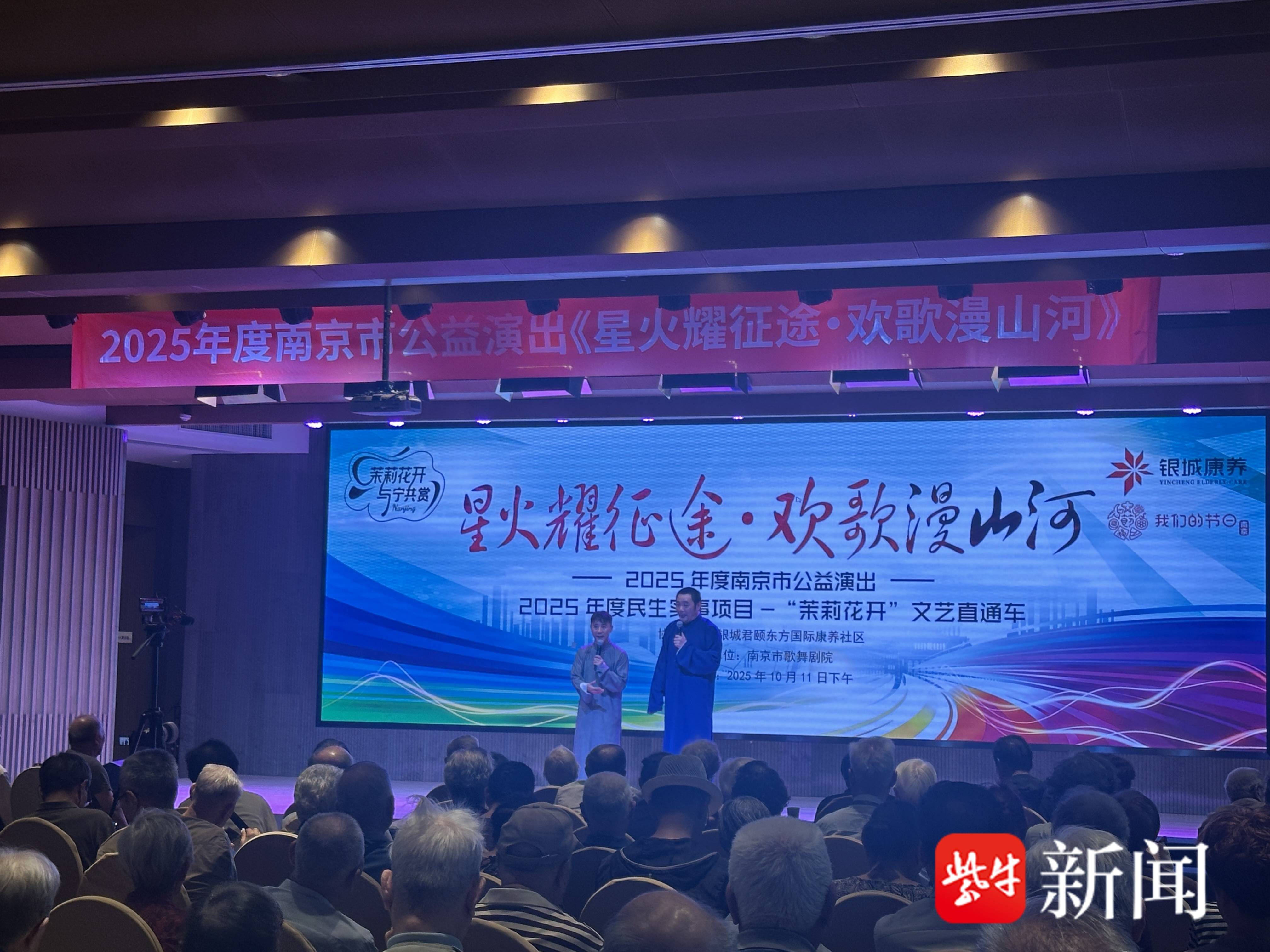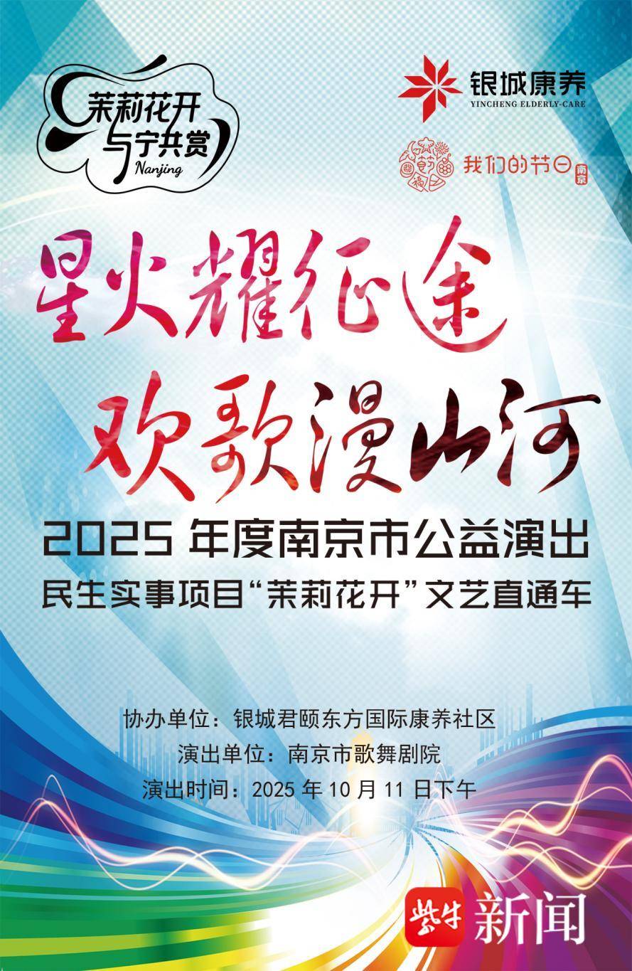 10月11日下午,2025年度南京市文艺精品公益演出、2025年度民生实事项目“茉莉花开”文艺直通车展演作品《星火耀征途·欢歌漫山河》在银城颐和东方国际养老社区精彩上演。南京市歌舞剧院倾情奉献了一场紧扣时代脉搏、凝聚奋进力量的视听盛宴。整场演出时长60分钟,深刻诠释了新时代的价值观与精神风貌,描绘出一幅拼搏奋进、追逐梦想的时代画卷。