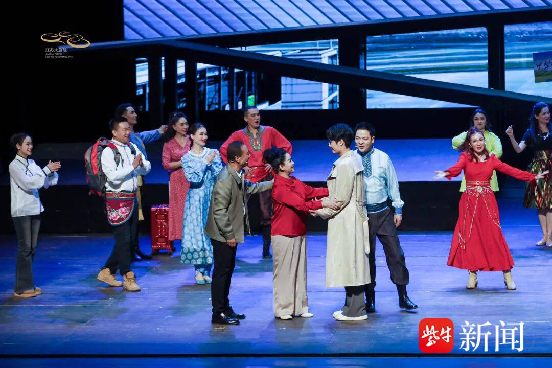 当舞台上呈现林则徐兴修水利的场景时,台下传来阵阵赞叹;当林一最终做出扎根家乡的抉择,合唱声响起的瞬间,不少观众眼中泛起泪光。剧中,伊犁的发展成就、浓郁民族风情与苏伊两地跨越万里的情谊,通过演唱、舞蹈、对白与灯光、音效的多维度呈现,鲜活地展现在江苏观众面前。