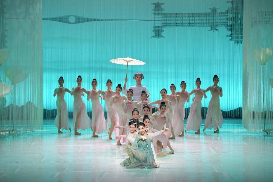 舞美设计同样延续了“东方美学现代化”的思路。服装设计摒弃了传统戏曲中“白蛇白衣、青蛇青衣”的单一配色,而是以渐变的“月白”与“青碧”为主色调,面料上融入了中国传统的苏绣工艺,绣出的水波纹路在舞台灯光下随舞者动作流动;舞台布景则以“水墨山水”为灵感,背景屏上的西湖、断桥、雷峰塔均以水墨笔触呈现,配合实景搭建的木质桥体,形成“虚实结合”的东方意境。当芭蕾舞者在“水墨西湖”的背景中起舞时,足尖的轨迹仿佛化作水墨晕染的线条,让整个舞台成为一幅动态的东方画卷。