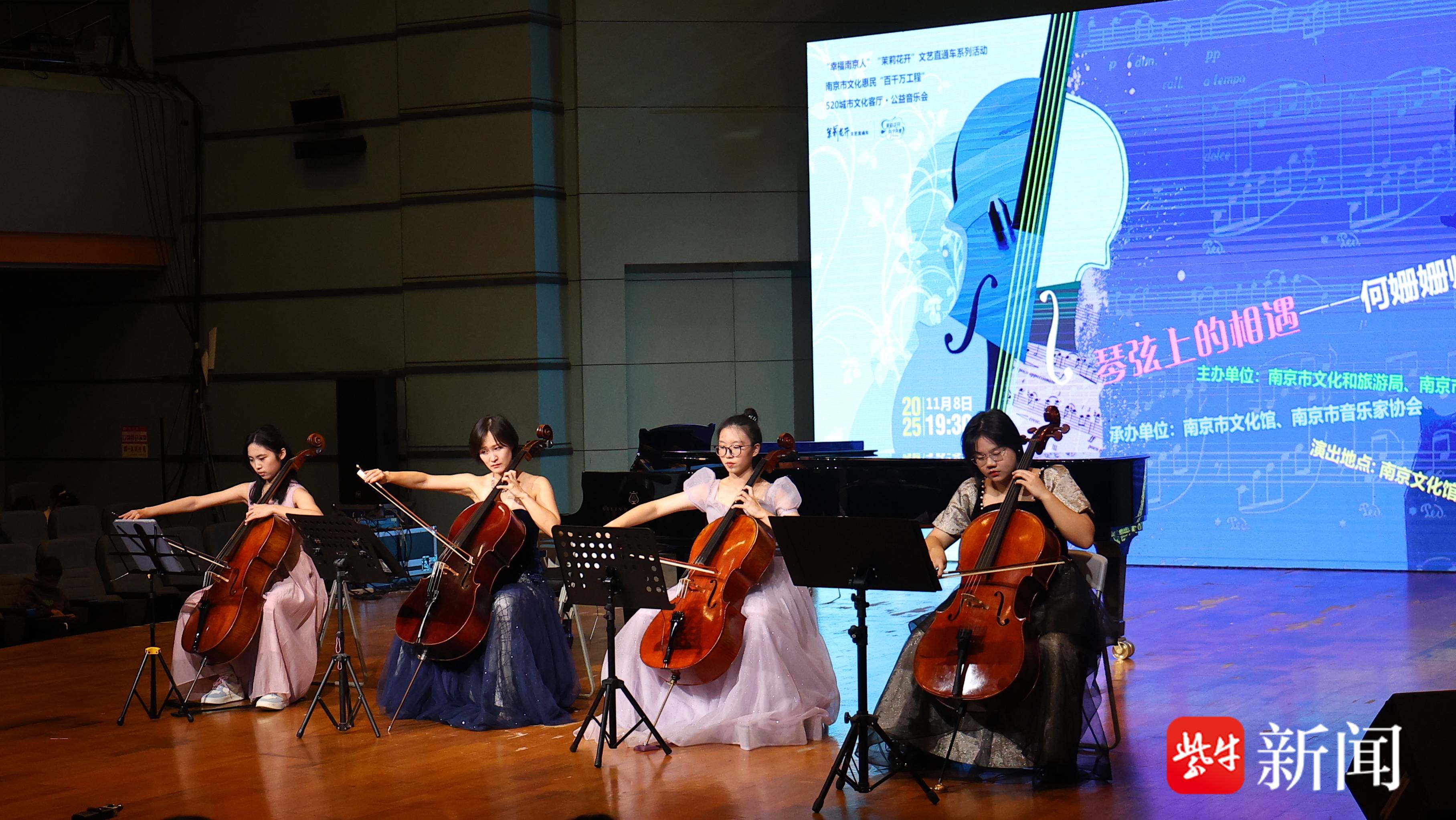 11月8日晚,“琴弦上的相遇——何姗姗师生音乐会”在南京文化馆音乐厅举行。本场演出由南京艺术学院附中大提琴教师何姗姗和她的学生共同献演,作为2025南京市文化惠民“百千万工程”公益演出之一,音乐会吸引了不少古典音乐爱好者、琴童家长热心参与。