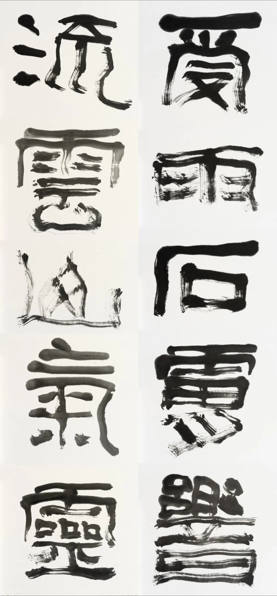 《受雨石肤响/流云山气灵》 236×53cm×2书法金陵美术馆藏