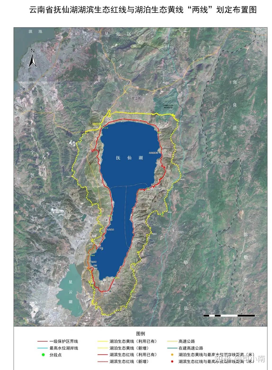 云南省抚仙湖湖滨生态红线及湖泊生态黄线“两线”划定布置图