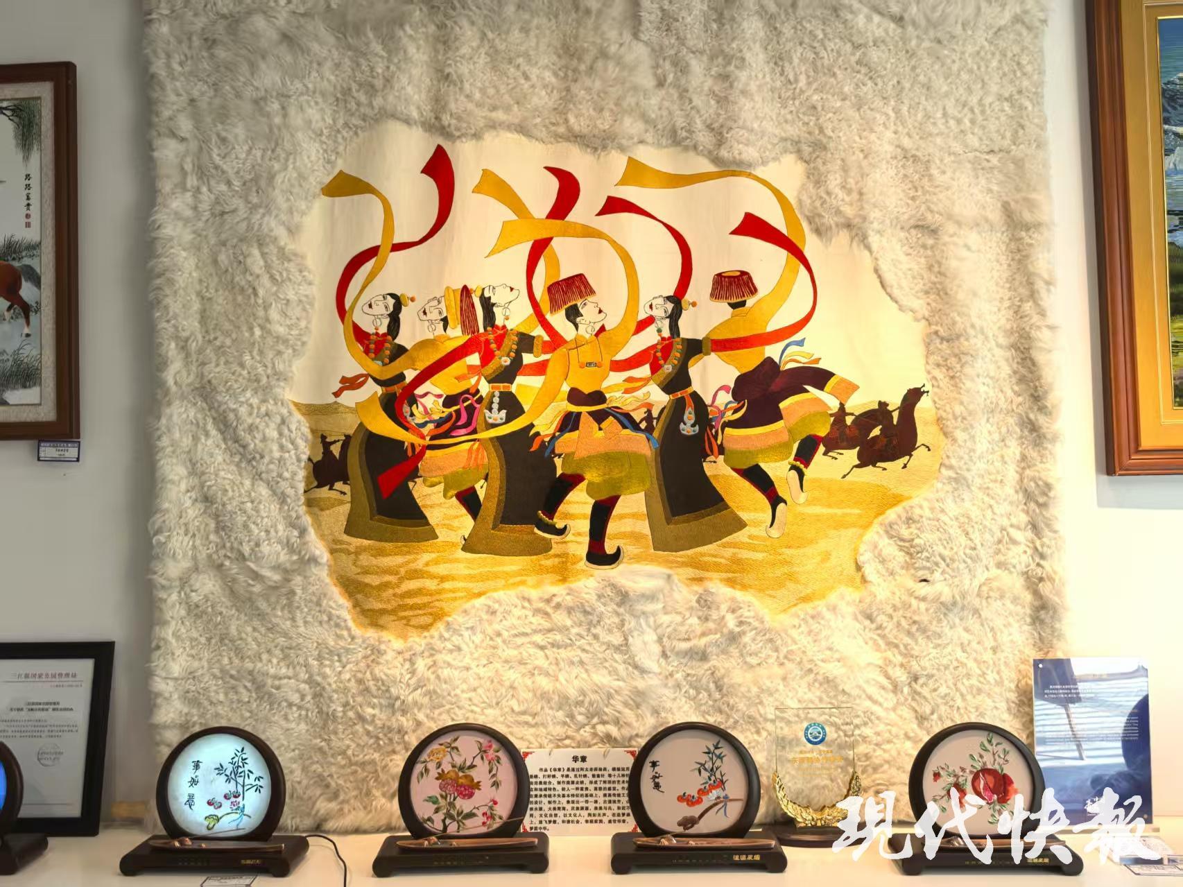 而在东西部协作的浪潮中,南京六合区更是精准发力:2017年起,便将青海羌韵绣艺的青绣工坊认定为帮扶车间,每年不仅给予10万元帮扶资金,还拿出8万—10万元用于新品研发奖励;2018年起,又推动“非遗进校园”,让皮绣技艺走进5所学校,在孩子们心中播下文化传承的种子;更积极搭建桥梁,让湟源皮绣走出青海,走进北京、上海、南京等东部城市,甚至远销日本、匈牙利等国家和地区。