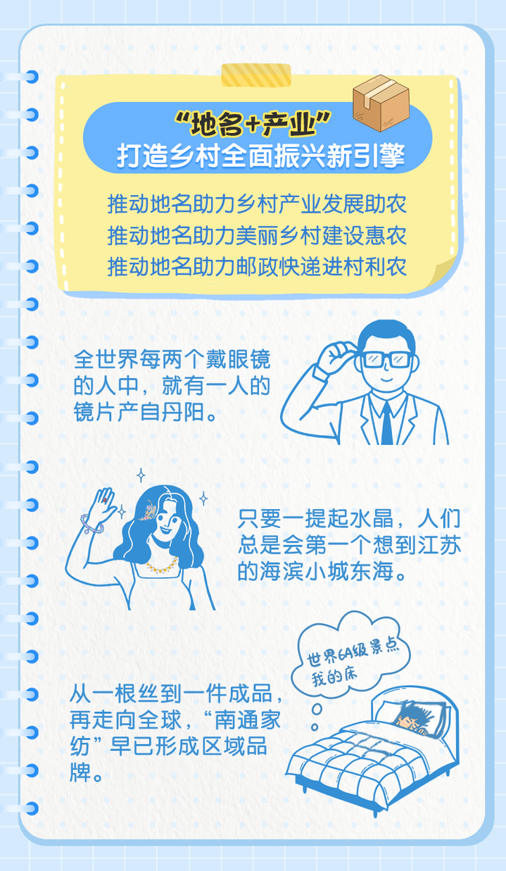 值得关注的是,《通知》继续向纵深发力,推进乡村地名与邮政快递深度融合,助力乡村全面振兴。有了名字,才能够让“快递进村”“山货进城”;有了名字,才能让游客精准定位,链起产业;深挖名字,才能产出更多附加值,发展经济,“名利双收”。