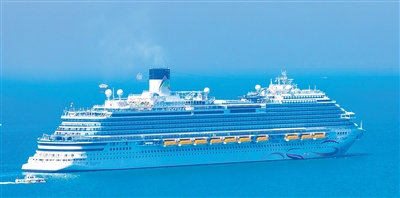 首艘国产大型邮轮“爱达·魔都号”驶向山东青岛邮轮母港。 杨雪梅摄(影像中国) |