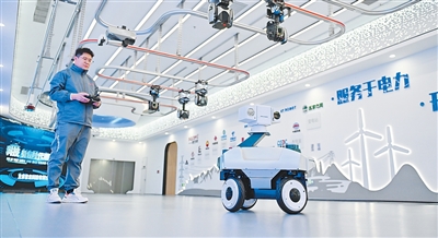 在河北雄安新区雄安科创中心中试基地,一家科技企业的工作人员在调试巡检机器人。 新华社记者 牟 宇摄 |