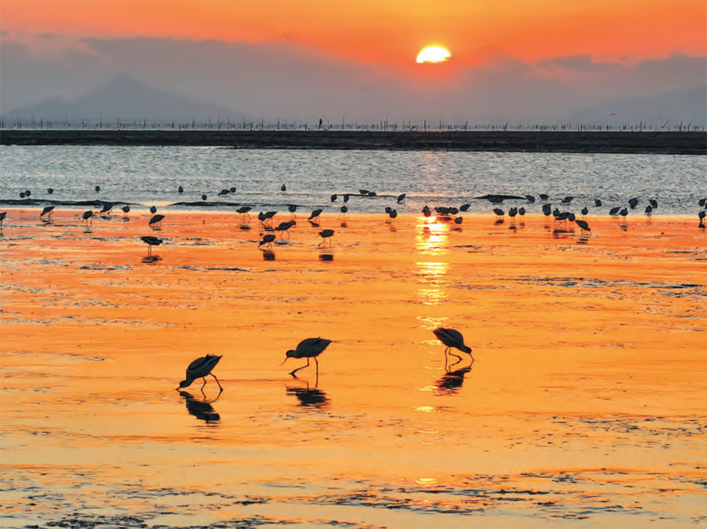 (通讯员 曹莹)海上生朝阳,群鸟戏沙滩。入秋以来,江苏连云港赣榆区入海口的一处海滩,成群结队的反嘴鹬觅食、嬉戏,构成一道美丽的风景线。近年来,赣榆区高度重视海洋生态保护,采取了一系列有效措施,包括加强海洋污染治理、恢复湿地生态功能等,极大地提升了海洋生态环境质量。与此同时,海边渔民的爱鸟护鸟意识也在不断增强,他们自发组织起来,保护这些远道而来的“客人”,为鸟类提供了一个安全、和谐的栖息环境。