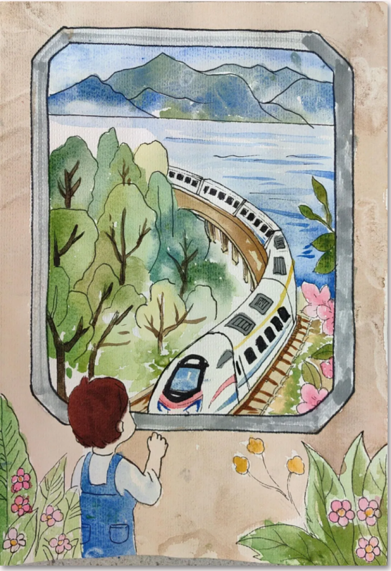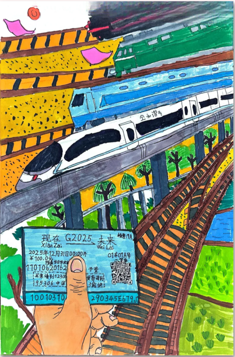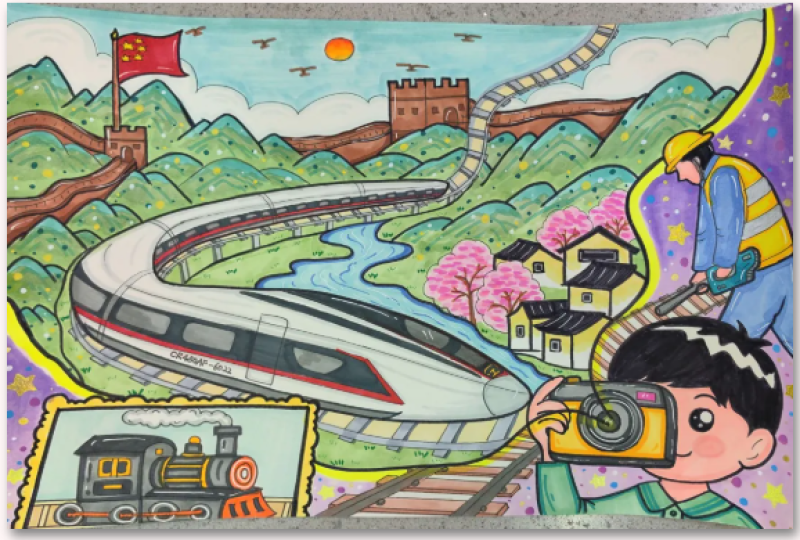 晨雾未散时,我总爱站在泰山站的天桥上看钢轨。那些泛着冷光的钢轨向远方延伸,像被风吹直的绸带,消失在青灰色的剪影里。站台上方“泰山站”三个红字非常醒目,和祖父制服上的路徽是同一种颜色。