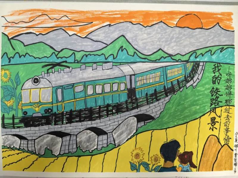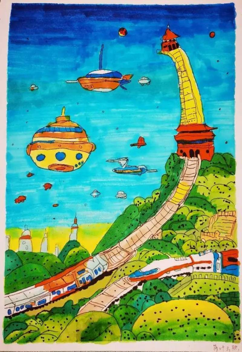 在火车上,我还把硬币立在窗台上做了小测试,掐表看它多久才会倒下,不过我打了好几个呵欠都没等到……我还喜欢列车广播的播报: “前方进入隧道。”随后车厢内外倏忽就暗下来,我心里就开始了奇幻的想象。邻座的男孩子也喜欢高铁穿隧道的感觉,我俩就把隧道命名为“时空小黑洞”。我们一起趴在车窗上,数着一路上要经过多少个这样的“黑洞”,很有趣。