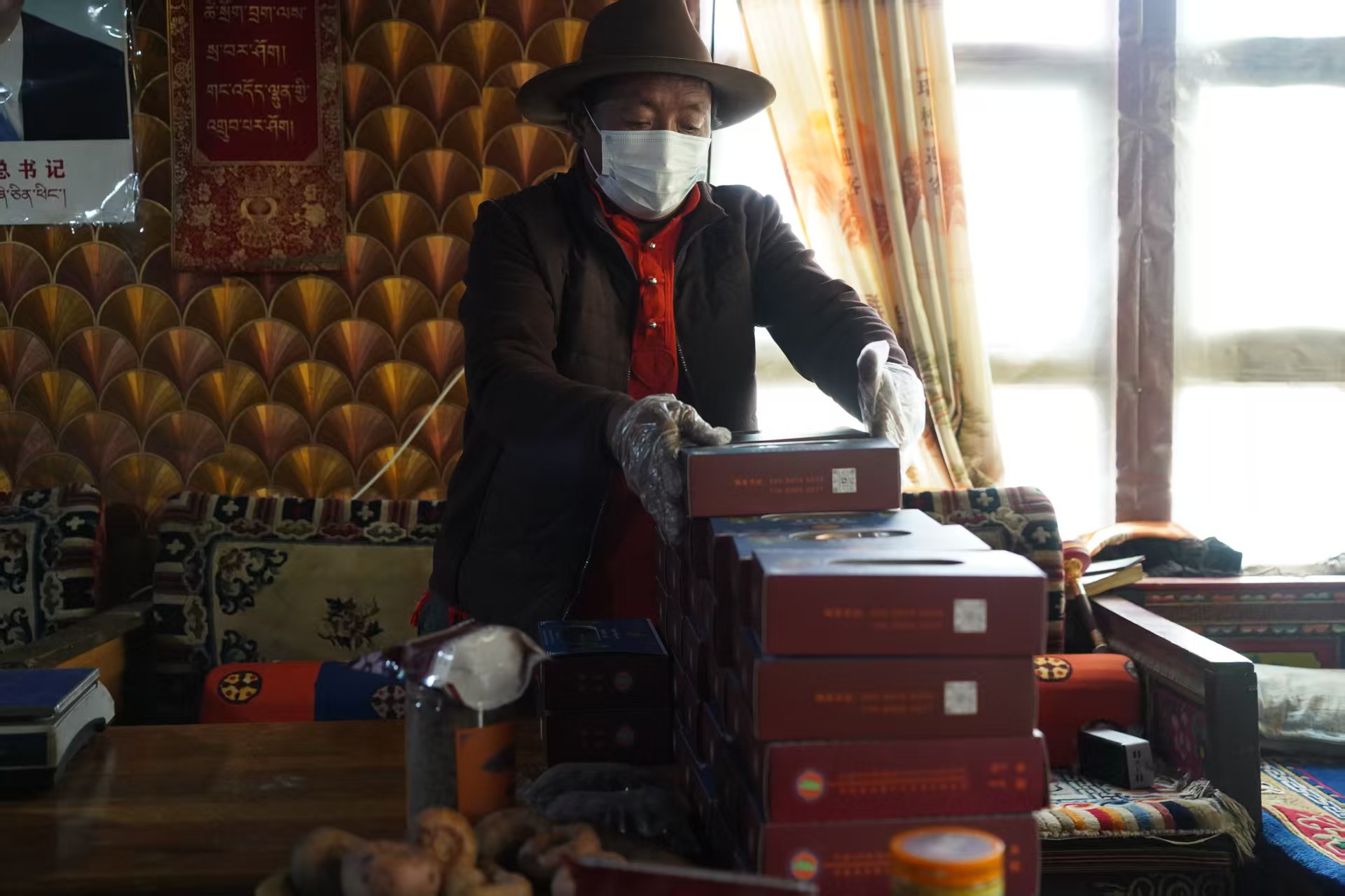 嘎松扎西摩挲着手中那片金黄,脸上是藏不住的笑意,“如今,这‘土疙瘩’成了宝贝,一盒能卖到49元!我们家一年靠芫根就能收入15万多元!”