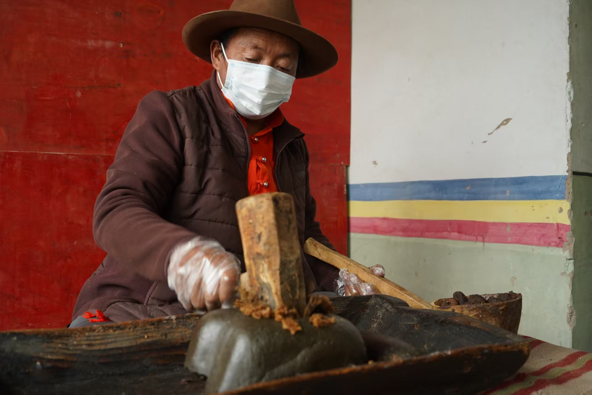 “以前地里的芫根,吃不完的只好喂牲口。”为了实现芫根这种当地土特产价值的最大化,嘎松扎西在世代传承的古法工艺基础上不断改进创新。嘎松扎西介绍,通过“晒干、泉洗、煮熟、切块、打碎、复晒”六道工序,一种作物便衍生出多种食用方式,乡土味道有了更多元的呈现,土特产也能跟随时代的发展引领新“食”尚。