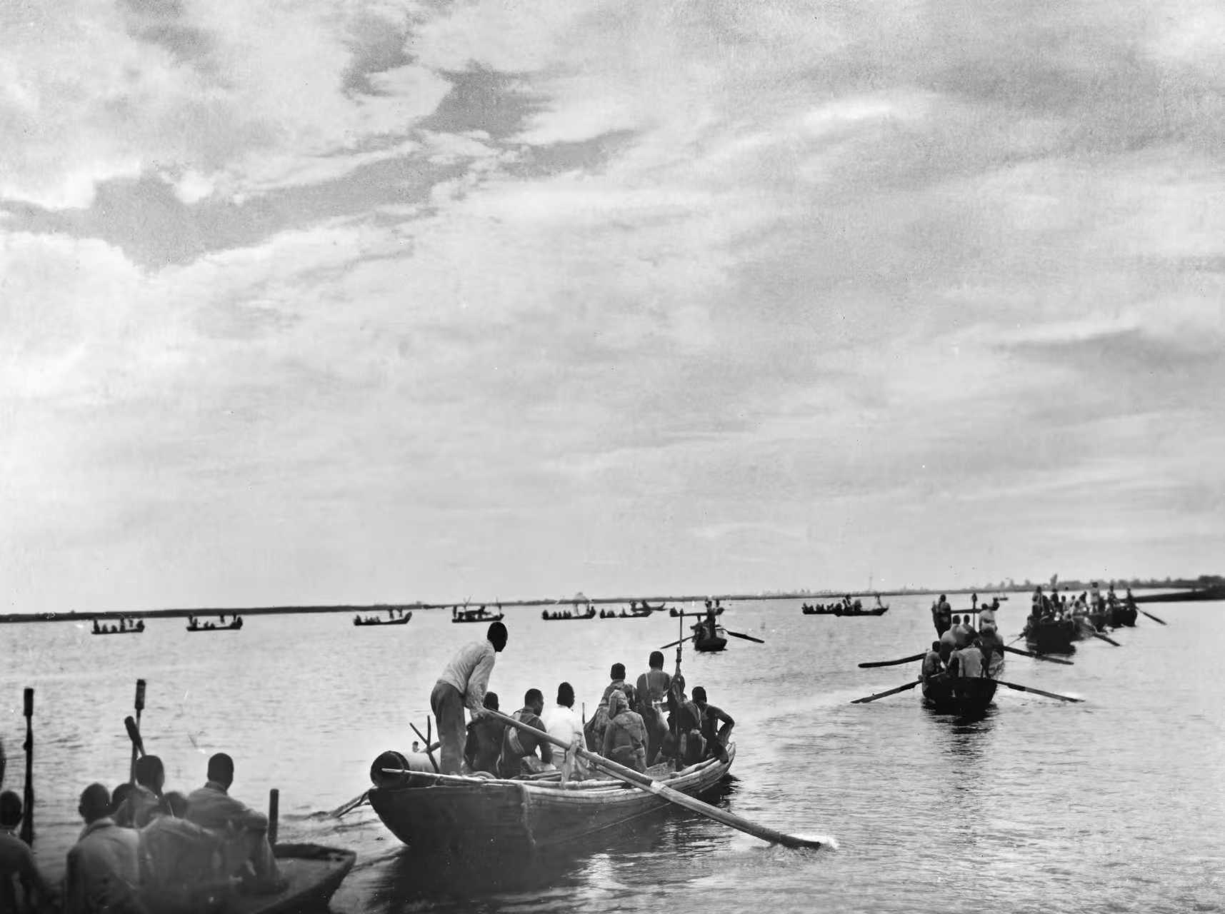 抗日战争中活跃在冀中白洋淀上的水上游击队——雁翎队。石少华摄
