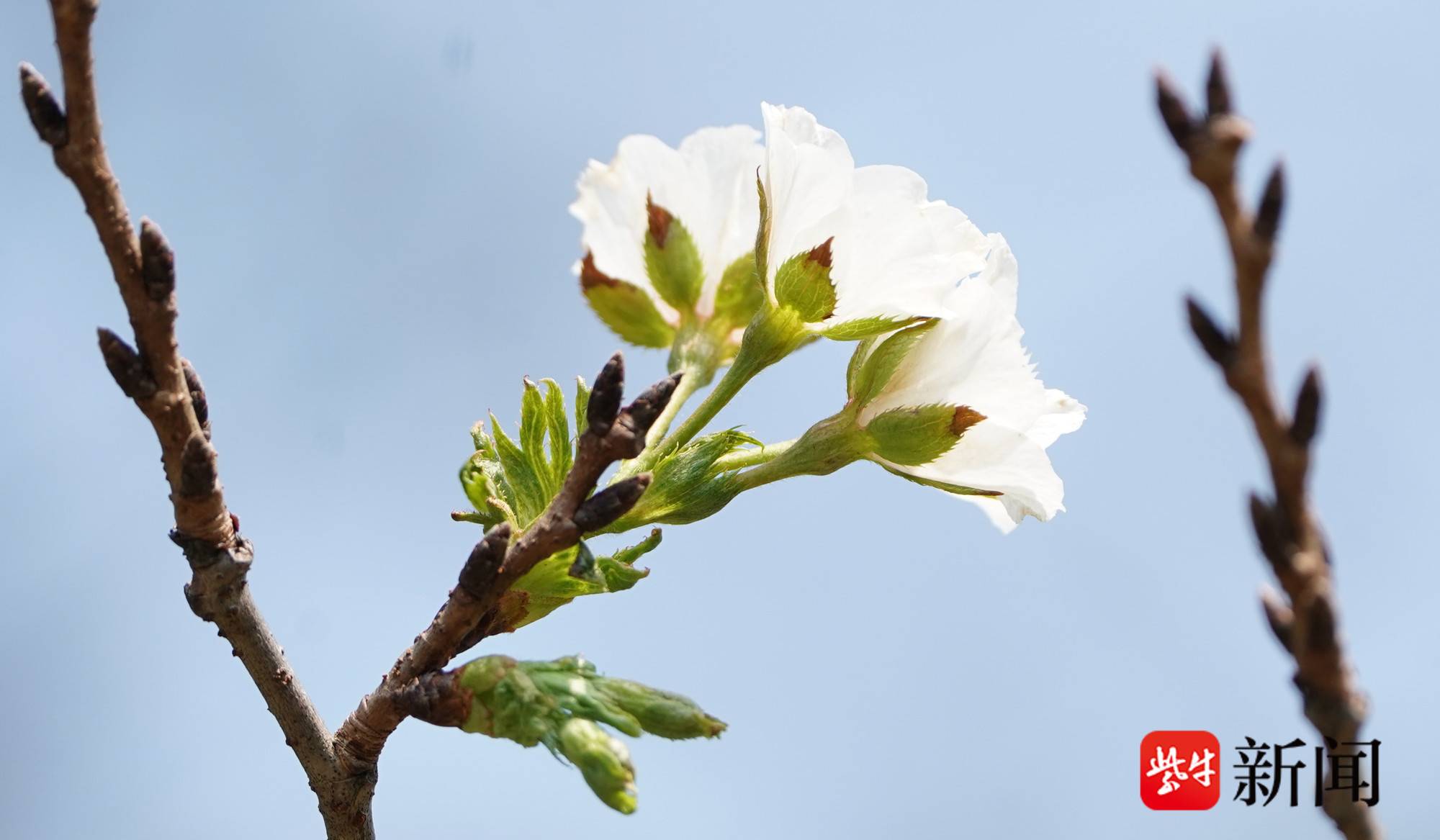 “秋来花枯叶落,然而,在南京中山植物园里,本应2月份开放的樱花,竟然已经悄然绽放了,这难道就是传说中的‘穿越’现象吗?”近日,有市民如此惊叹道。