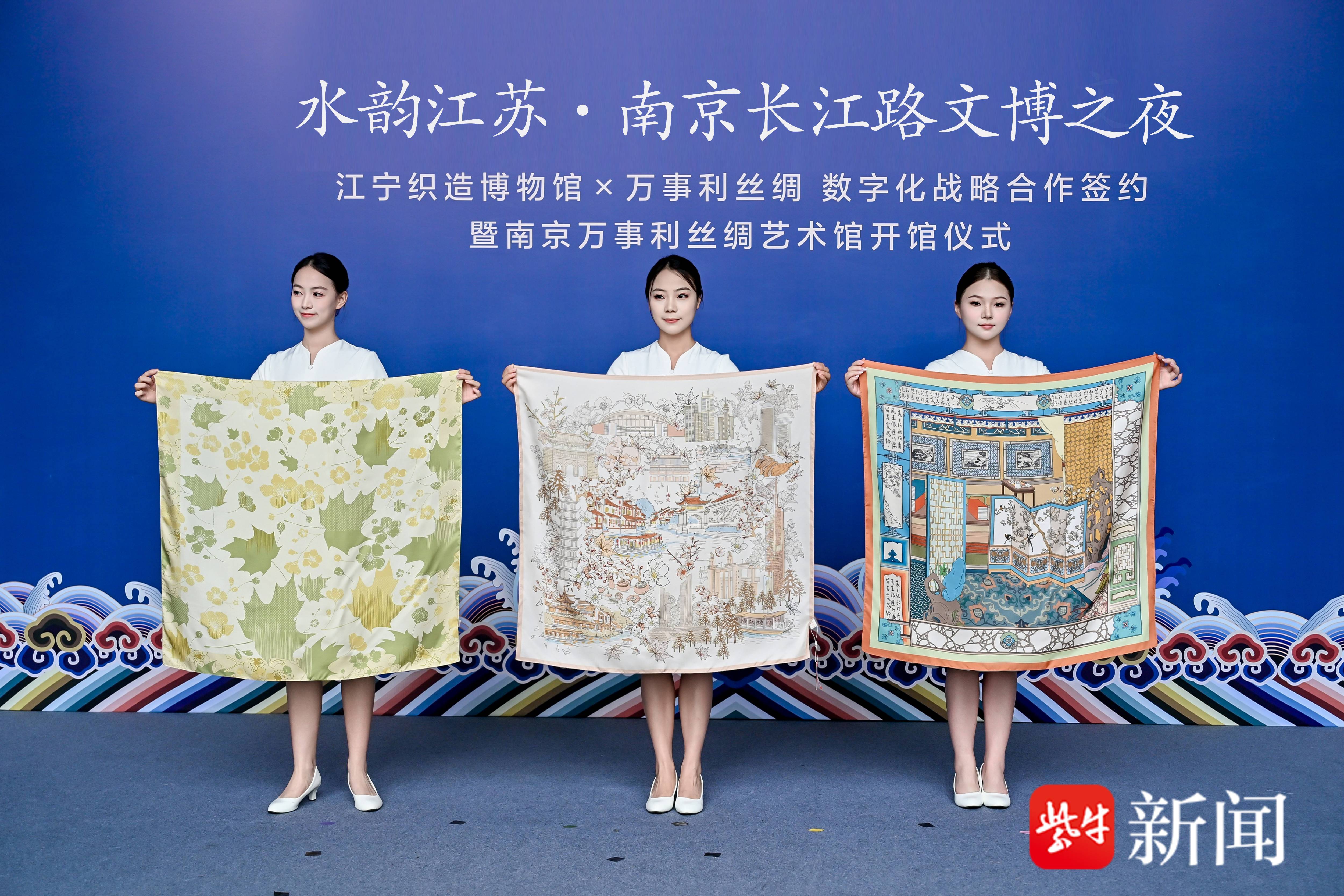 作为“水韵江苏·南京长江路文博之夜”的重要主题活动之一,江宁织造博物馆与江苏万事利文化科技有限公司正式签署数字化战略合作协议,南京万事利丝绸艺术馆同步开馆。此次签约不仅是两家文化标杆单位的强强联合,更标志着“江宁织造博物馆×万事利丝绸×文都云”三方数字化合作全面启动,共同在长江路上开启南京文博数字化发展的新篇章。南京市博物总馆馆长许强表示,此次合作是政企协同推进文化产业高质量发展的生动实践,也是南京文博加快构建“文化+科技+旅游”融合生态的重要探索。