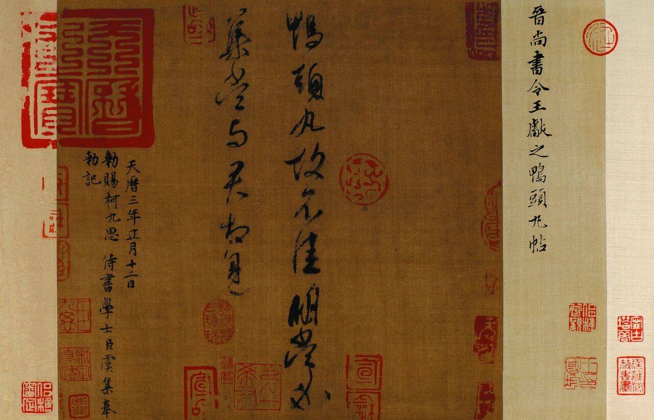 王献之的代表书法作《鸭头丸帖》我十年前曾在上海博物馆亲眼看过,这个不是他的真迹,是唐摹本,非常的精彩,这件作品中有一种苍茫的笔感,有一种一气呵成的激情澎湃,下笔后势不可遏,尽管只有两行字,但字的结构、布局都非常好,特别有感染力。这真是不可多得的作品,唐摹本也摹得极好,我不知道这是怎么摹出来的,看得人特别激动,这是一件了不起的作品。