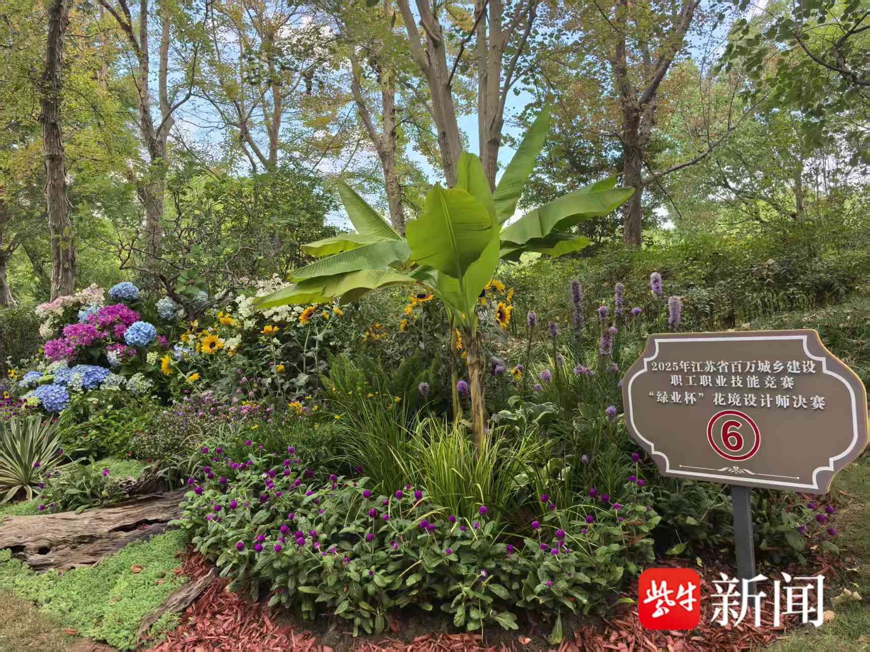 日前,2025年江苏省百万城乡建设职工职业技能竞赛“绿业杯”园林绿化行业花境设计师决赛在啬园景区落幕。来自全省的60多位园林工匠,以花草为笔、大地为布,在这里留下一件件构思巧妙、独具创意的园艺参赛作品,让市民和游客感受“青山毓秀、绿水情怀”的动人画卷。